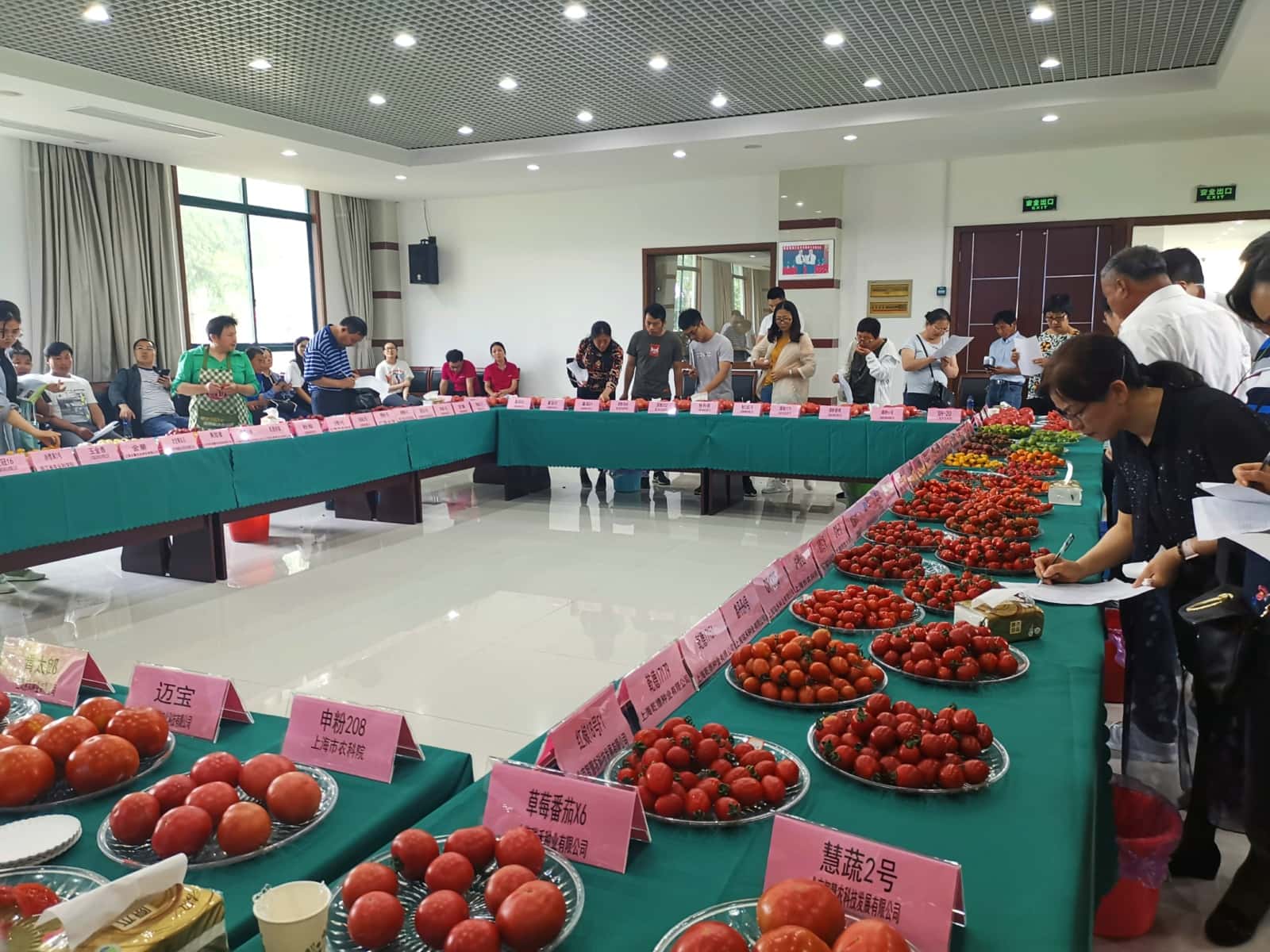 . 基地现场一览文章源自:上海蔬菜食用菌行业协会 Shanghai Vegetable & Edible Fungi Industry Associatio上海蔬菜食用菌行业协会-https://www.shsjx.org.cn/10064.html . 参赛产品一览文章源自:上海蔬菜食用菌行业协会 Shanghai Vegetable & Edible Fungi Industry Associatio上海蔬菜食用菌行业协会-https://www.shsjx.org.cn/10064.html . 据了解,此次品鉴会上亮相的品种颜色、大小各异,口感和果实硬度也不尽相同。目前,市民需求已经从“吃饱”向“吃好”“吃营养”转变,消费者对“记忆中沙沙甜甜的番茄”情有独钟,对食品安全的重视程度也越来越高,因此,培育减少农药使用的、综合抗病性高的品种迫在眉睫。文章源自:上海蔬菜食用菌行业协会 Shanghai Vegetable & Edible Fungi Industry Associatio上海蔬菜食用菌行业协会-https://www.shsjx.org.cn/10064.html