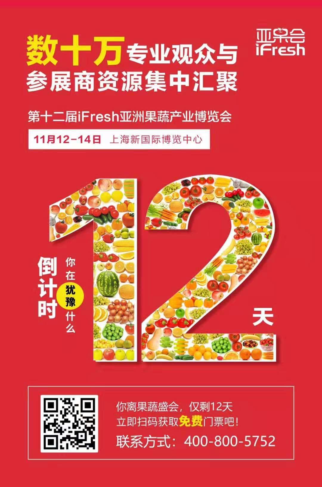 . 第十二届iFresh亚洲果蔬产业博览会将于2019年11月12日—14日在上海新国际博览中心E4、E5馆举行,展览面积将达到15万平方米。上海蔬菜食用菌行业协会作为主办方之一,在展会期间举办“2019中国(上海)优质蔬菜产业链博览会暨线上线下对接大会(简称iFresh中蔬展)”,致力于打造中国蔬菜行业的国际化、B2B专业贸易平台,为蔬菜产业链提供从生产到销售的一站式解决方案。文章源自:上海蔬菜食用菌行业协会 Shanghai Vegetable & Edible Fungi Industry Associatio上海蔬菜食用菌行业协会-https://www.shsjx.org.cn/11214.html