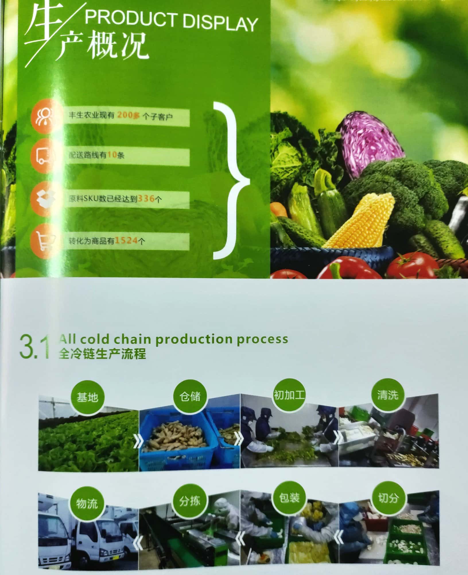 . 上海丰生农业科技有限公司(“丰生农业”)是一家专注于蔬果供应的加工行业。自2014年成立以来,丰生农业以客户为中心,立志为餐饮企业解决蔬果食材领域的食品安全、成本优化以及产品标准化的三大课题。