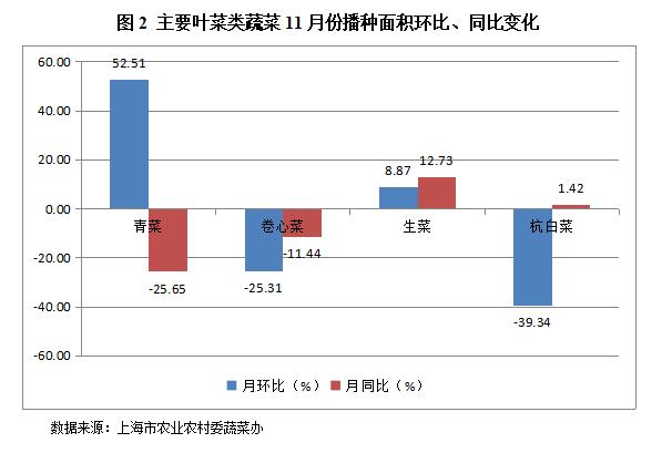 . 上海11月上中旬温高少雨,日照充足,适宜在田蔬菜生长以及秋冬蔬菜秧苗生长、管理,但降水持续偏少,大棚内蔬菜易发虫害。24日起小雨天气为主并伴有气温明显下降,阴冷天气对露地蔬菜生长及田间管理不利,也不利于冬菜播种育苗。10月份郊区蔬菜总上市量为239459吨,环比增加10.21%,同比减少12.23%。