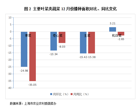 . 上海市12月平均气温比常年偏高;降水量较常年偏多,主要集中在下旬;日照时数大部地区较常年略偏少。本月上半月气温、降水适宜,日照充足,有利于蔬菜生长;下半月阴雨天气较多,日照偏少,温湿度较高,易引发大棚蔬菜病害。12月份郊区蔬菜总上市量为207279吨,环比减少16.02%,同比减少24.49%。