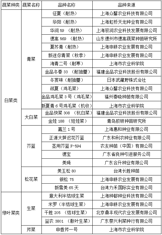 · 为进一步加快市郊蔬菜品种结构调整,引导菜农科学选用良种,上海市农业技术推广服务中心在多年多点试验示范的基础上,通过组织品种调查、区县推荐和专家评审,遴选出50个潜力品种,现介绍如下:文章源自:上海蔬菜食用菌行业协会 Shanghai Vegetable & Edible Fungi Industry Associatio上海蔬菜食用菌行业协会-https://www.shsjx.org.cn/12011.html