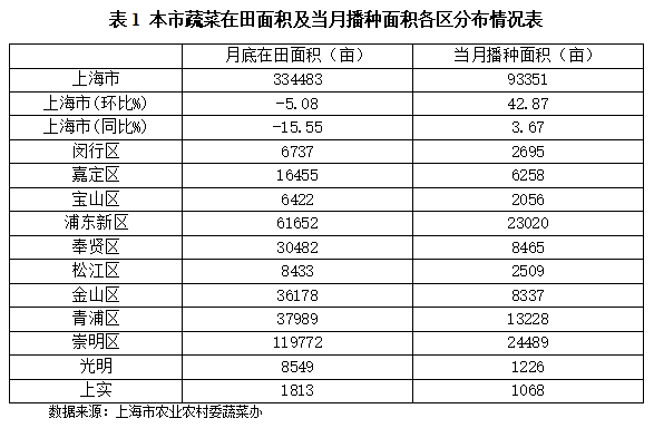 . 1 上海市郊区蔬菜生产情况文章源自:上海蔬菜食用菌行业协会 Shanghai Vegetable & Edible Fungi Industry Associatio上海蔬菜食用菌行业协会-https://www.shsjx.org.cn/12346.html