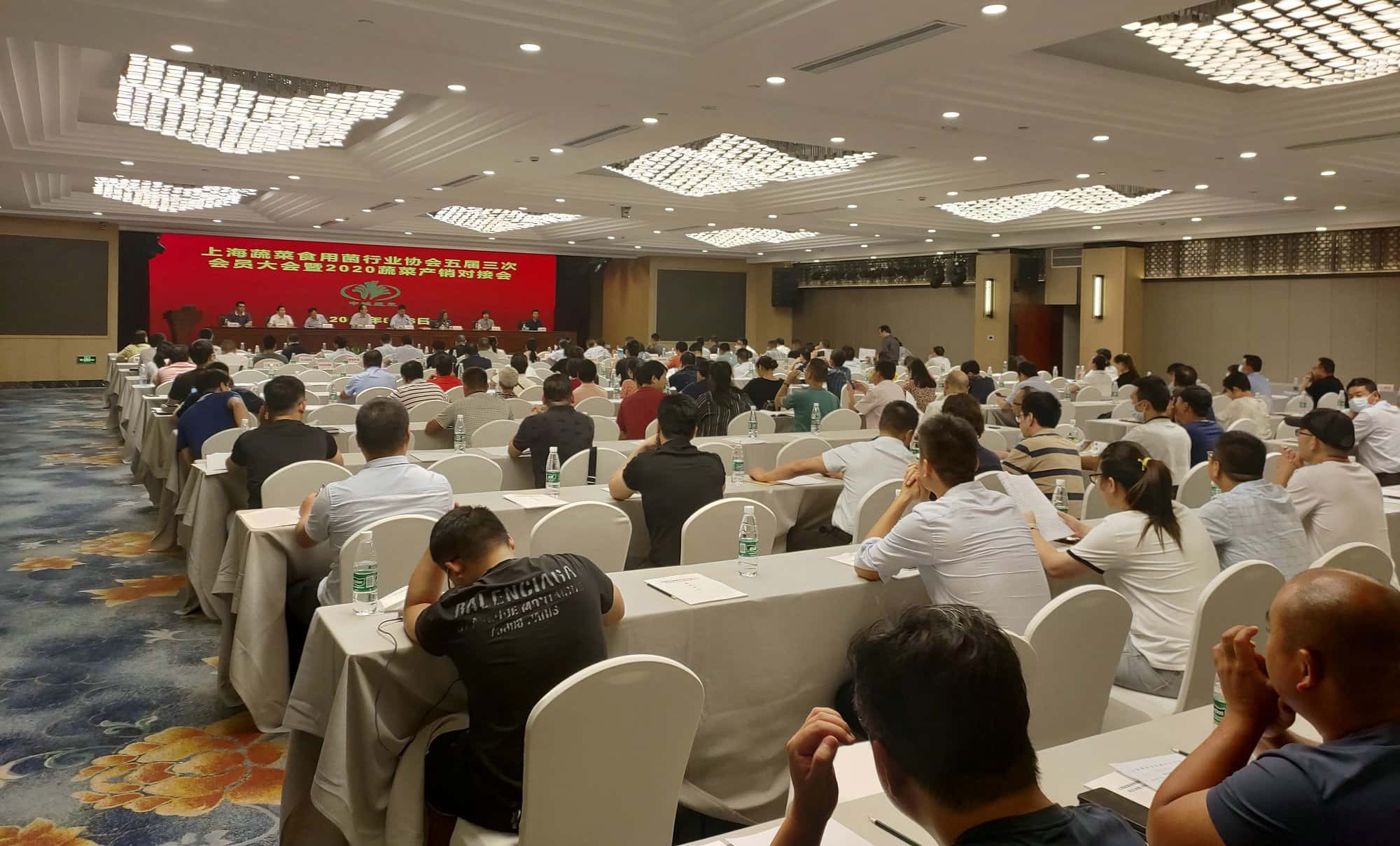 . 2020年8月6日,上海蔬菜食用菌行业协会第五届第三次会员大会暨2020蔬菜产销对接会在青松城大酒店顺利召开。本次大会约200人参加,其中会员约170人,另外,会议还邀请了上海市农业农村委蔬菜办翟欣副主任,以及盒马鲜生、每日优鲜、叮咚买菜、清美鲜食、中饮巴比、上蔬永辉等蔬菜零售电商市场采购相关负责人参加。