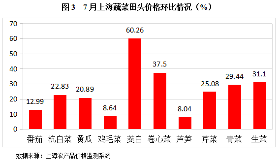 . 根据监测数据,7月份全市监测的10种蔬菜田头价环比均为上涨,涨幅最大的是茭白,上涨了60.26%。