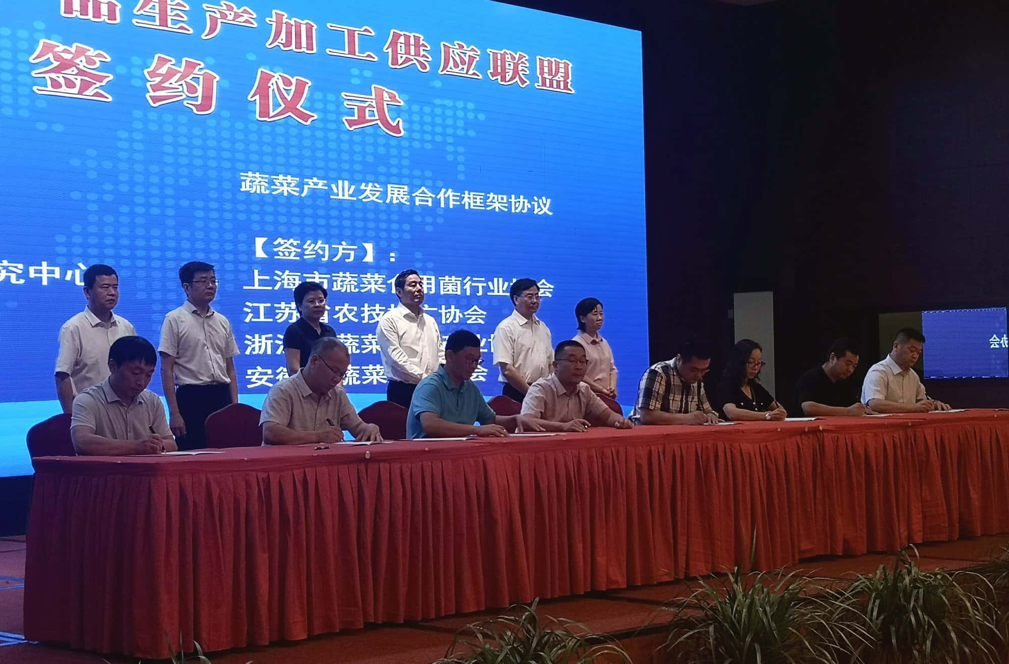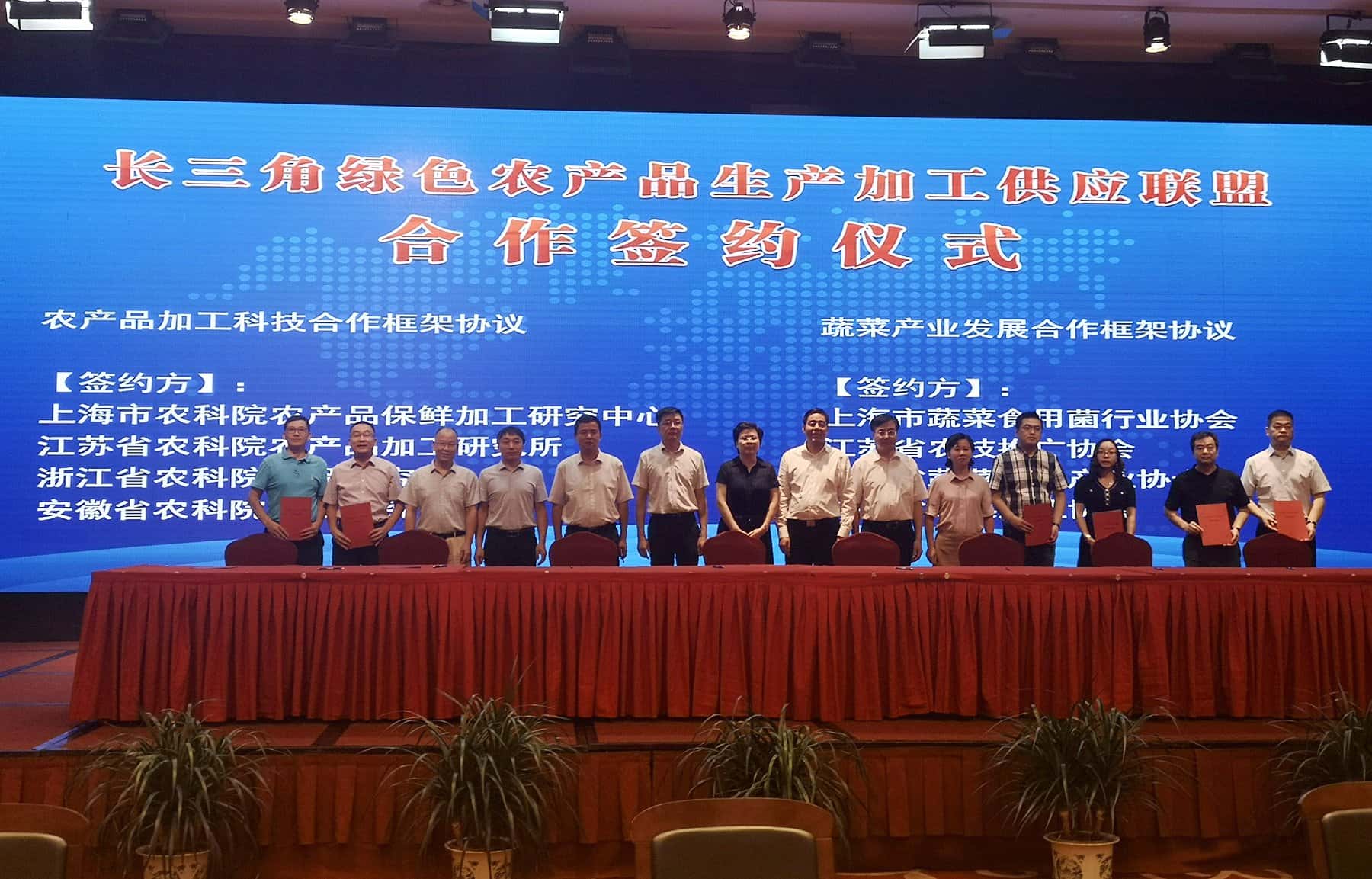 . 会议由安徽省农业农村厅厅长卢仕仁主持。上海市农业农村委二级巡视员陆峥嵘、上海市农业农村委发展规划处二级调研员叶炽瑞、二级主任科员吉睿等苏浙皖农业农村部门负责领导出席。联盟成员代表上海市农业科学院作物所(农产品保鲜加工研究中心)副所长杨立勇,主任乔勇进、上海蔬菜食用菌行业协会秘书长孙占刚、上海生猪行业协会秘书长黄红梅、上海市设施农业装备行业协会会长余一韩等联盟成员单位代表、企业代表等共100多人参会。文章源自:上海蔬菜食用菌行业协会 Shanghai Vegetable & Edible Fungi Industry Associatio上海蔬菜食用菌行业协会-https://www.shsjx.org.cn/13724.html 签约仪式现场文章源自:上海蔬菜食用菌行业协会 Shanghai Vegetable & Edible Fungi Industry Associatio上海蔬菜食用菌行业协会-https://www.shsjx.org.cn/13724.html 揭牌仪式现场文章源自:上海蔬菜食用菌行业协会 Shanghai Vegetable & Edible Fungi Industry Associatio上海蔬菜食用菌行业协会-https://www.shsjx.org.cn/13724.html