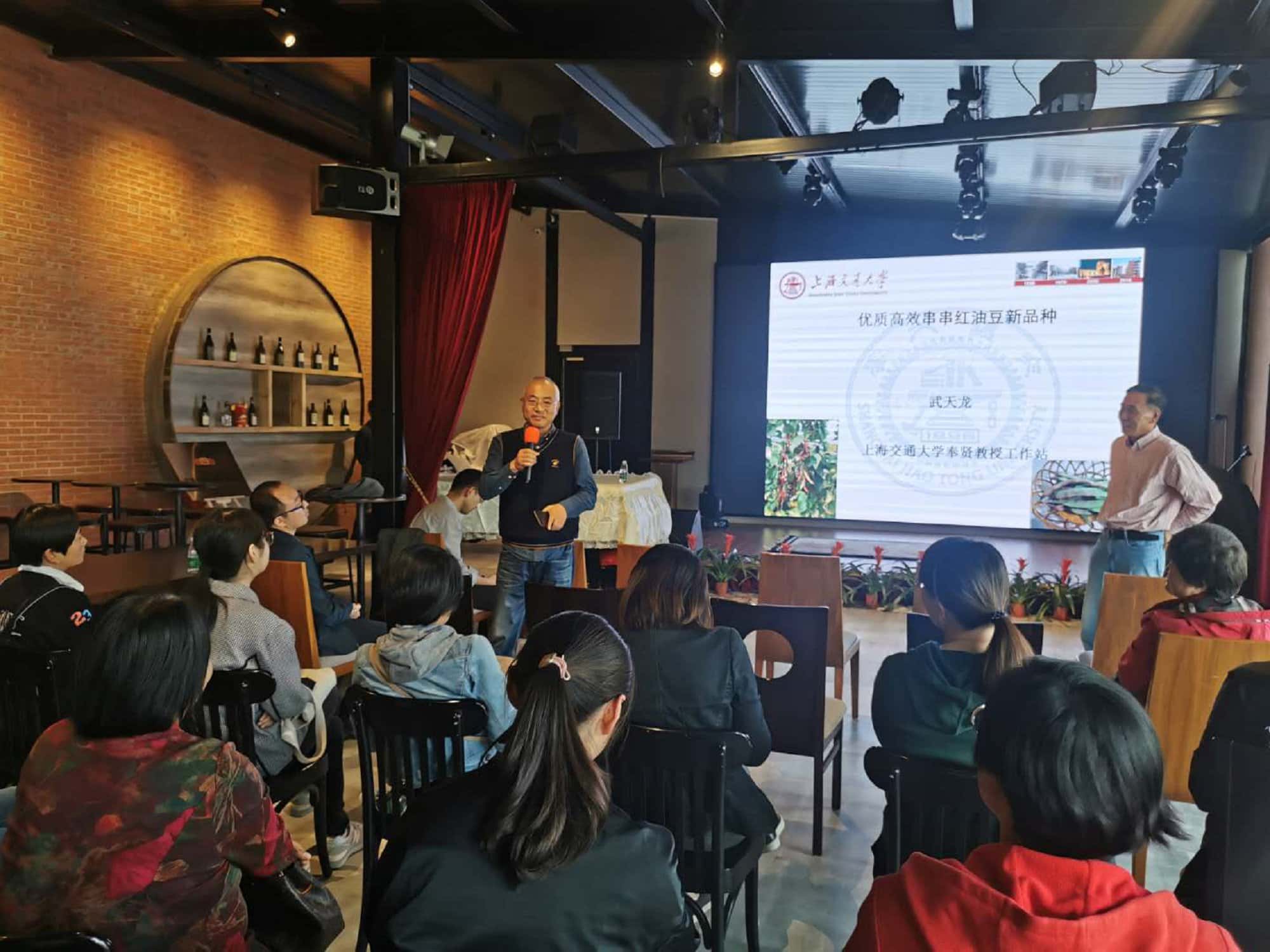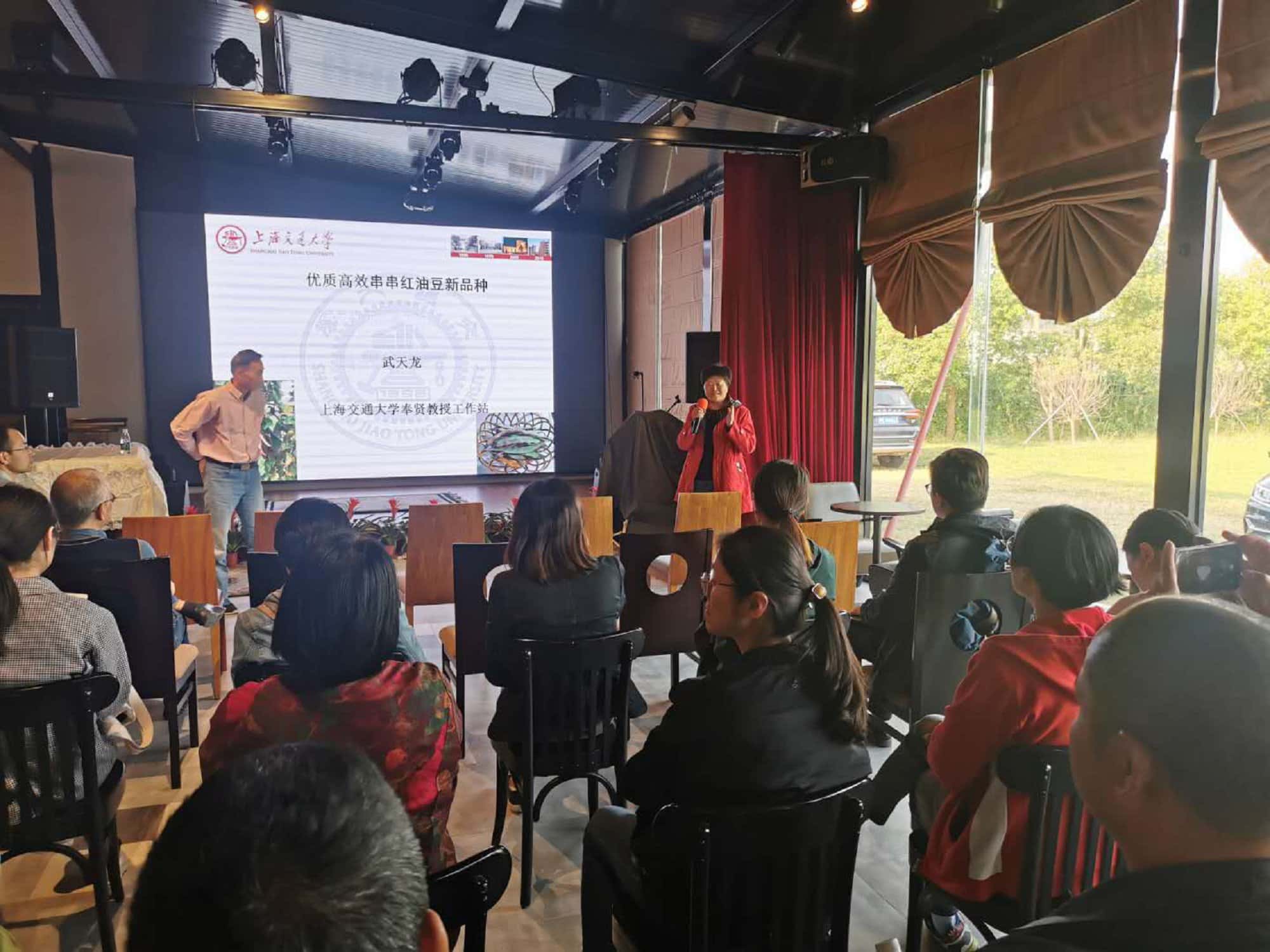 . 2020年10月23日由上海奉贤区蔬菜技术推广站、上海交通大学奉贤教授工作站和上海农业与生物学院豆类课题组在奉贤艾妮维农产品专业合作社联合举办了“串串红油豆现场推介会”。