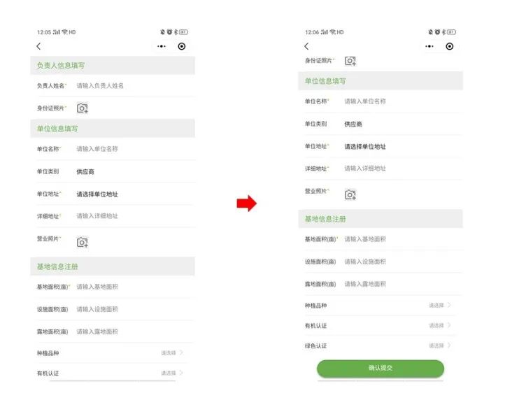 . 包括三方面内容:负责人信息、单位信息、基地信息。
