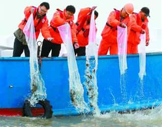昨天,上海市长江口中华鲟自然保护区管理处在长江口开展松江鲈鱼、胭脂鱼的增殖放流活动。