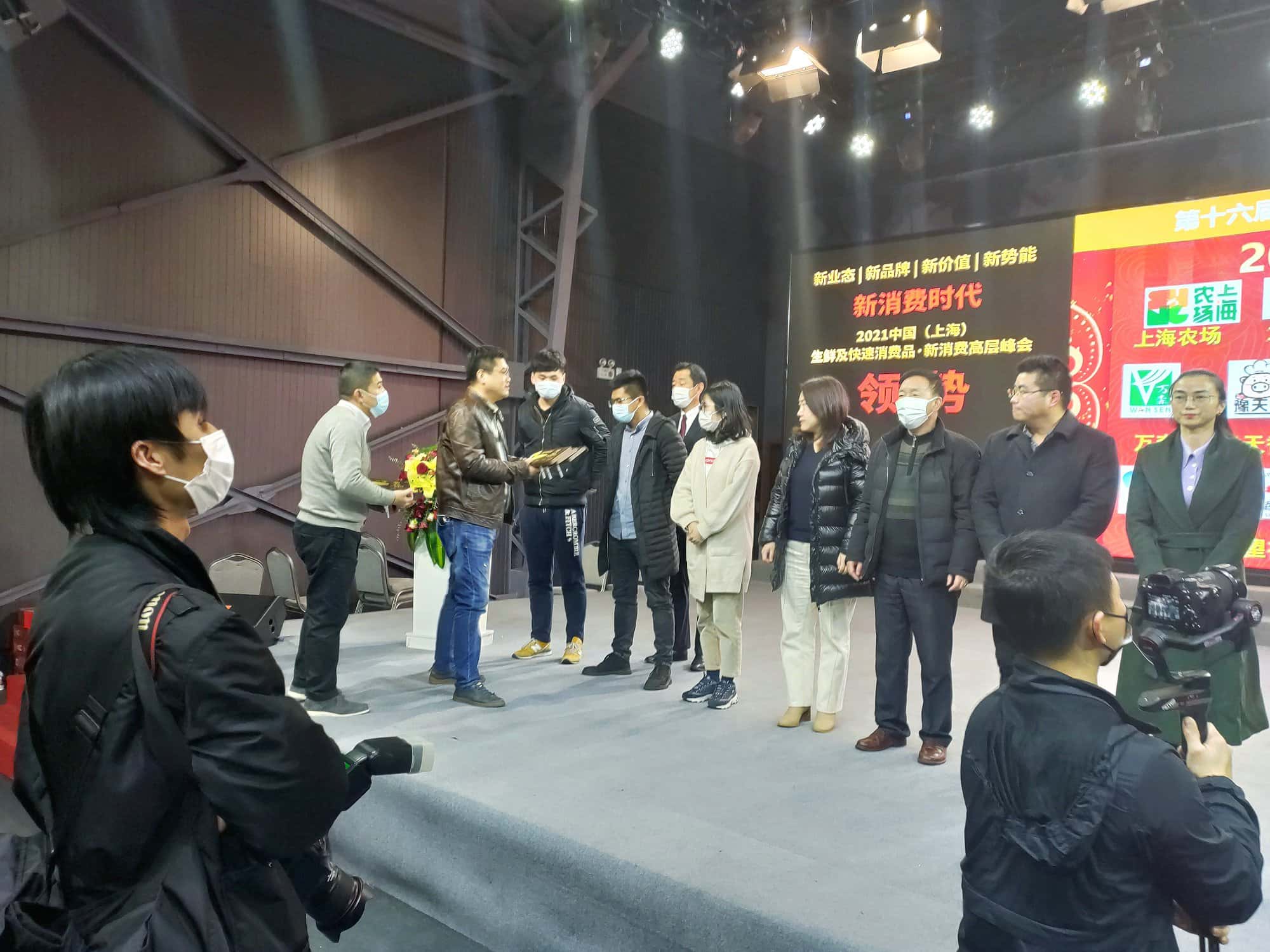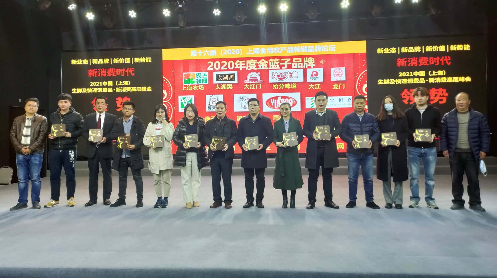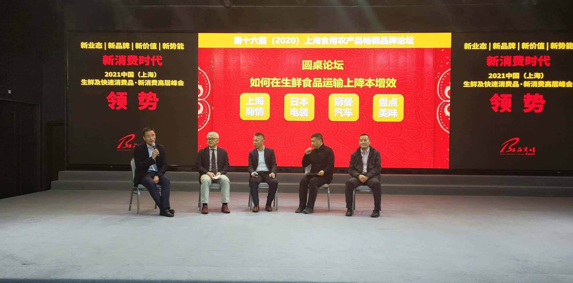 《大势所趋-食品产业的自动化、数字化和智能化之路》 . 会议同期举行圆桌论坛,论坛邀请上海商情信息中心主任原立军、电装(中国)投资车辆网事业部本部长加藤敏裕(林钧翻译)、新天天配送运营总监徐伟宏、盘点美味高级副总裁龚烨华就如何在生鲜食品运输上降本增效进行讨论。 从左至右以此为: 上海商情信息中心主任 原立军 电装(中国)投资车辆网事业部本部长加藤敏裕(林钧翻译) 新天天配送运营总监徐伟宏 盘点美味高级副总裁 龚烨华 . 随后上海商联会常务副会长吴星宝就“品牌是一个企业灵魂”展开精彩发言。他提出品牌的核心理念、文化、外形要素和老百姓的接受度都是值得企业所思考的。 . 上海商联会常务副会长 吴星宝 . 最后由行业协会负责人给2020年度金篮子品牌、2020年度优秀品牌职业经理人等多项奖项颁奖。 孙占刚秘书长为获奖企业 颁发2020年度金篮子品牌奖项