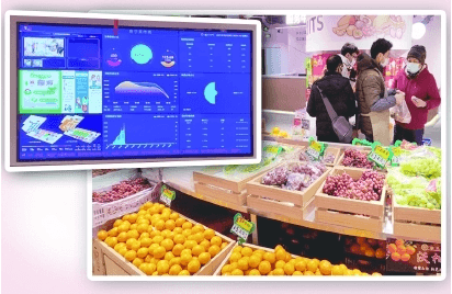 . “九宫格”智能信息化数据显示屏上,数据实时“翻滚”变动——测温监控数据、每日食品检测信息、市场导购信息、实时交易数据展示、平价肉平价菜价格等九项信息实时更新,进门的消费者都可直观了解到菜场的各项情况,就像映射在实体菜场之上的一面“数字孪生”镜子。文章源自:上海蔬菜食用菌行业协会 Shanghai Vegetable & Edible Fungi Industry Associatio上海蔬菜食用菌行业协会-https://www.shsjx.org.cn/14683.html