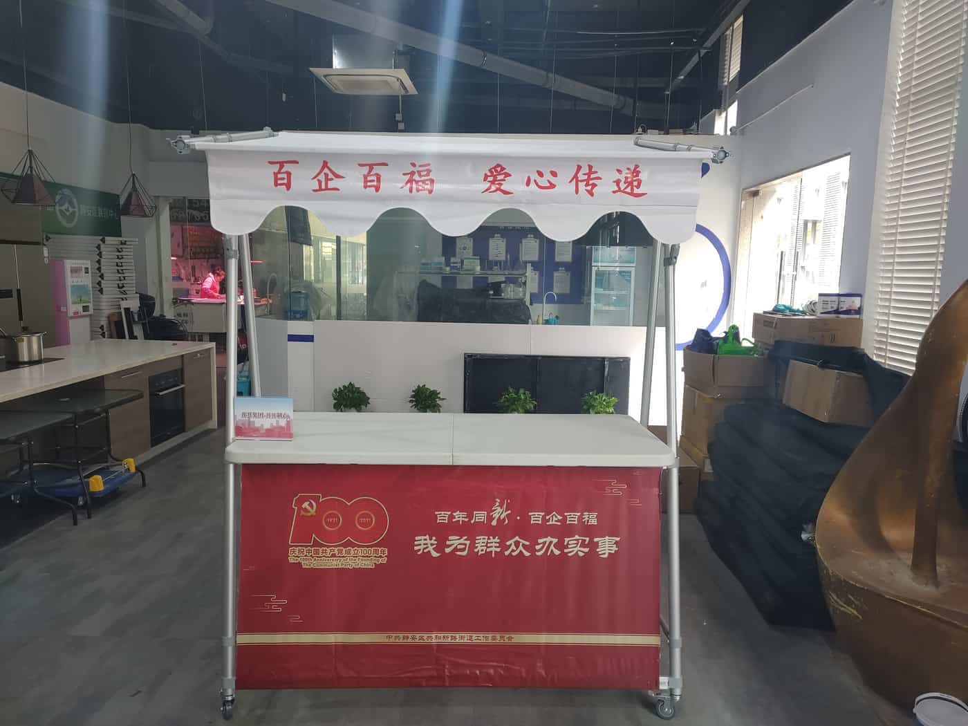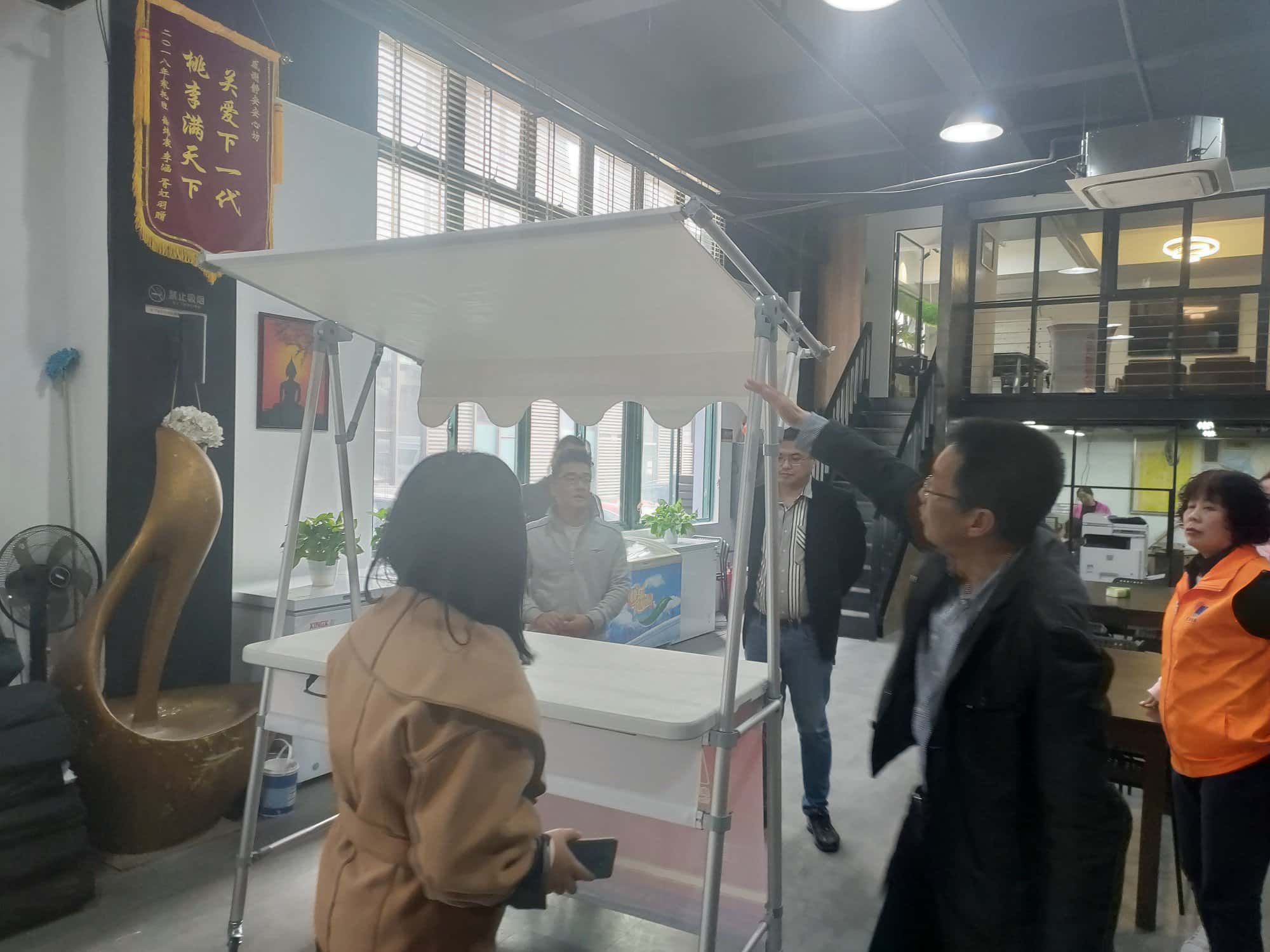 . 另外,张曙逸理事长还领大家参观了安心坊社区商业服务中心用于开展活动的便捷摊位。这些便捷摊位专门用来解决参展企业摆摊难,摆摊贵等相关问题而设置。
