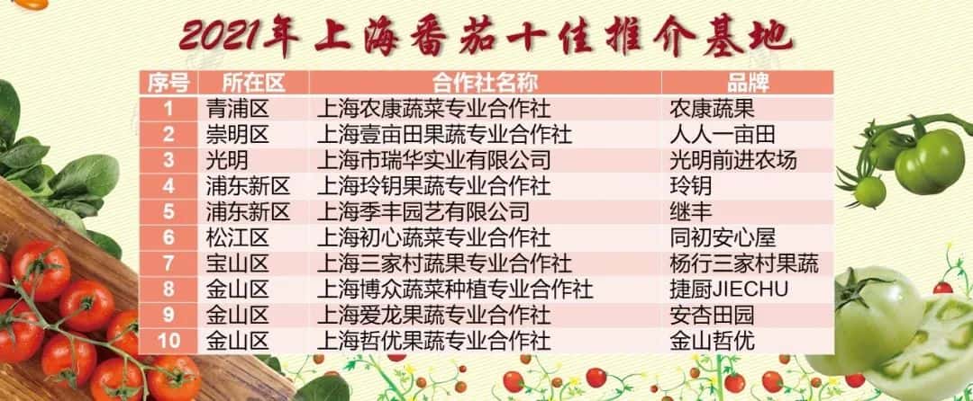 上海番茄十佳推介基地文章源自:上海蔬菜食用菌行业协会 Shanghai Vegetable & Edible Fungi Industry Associatio上海蔬菜食用菌行业协会-https://www.shsjx.org.cn/15332.html