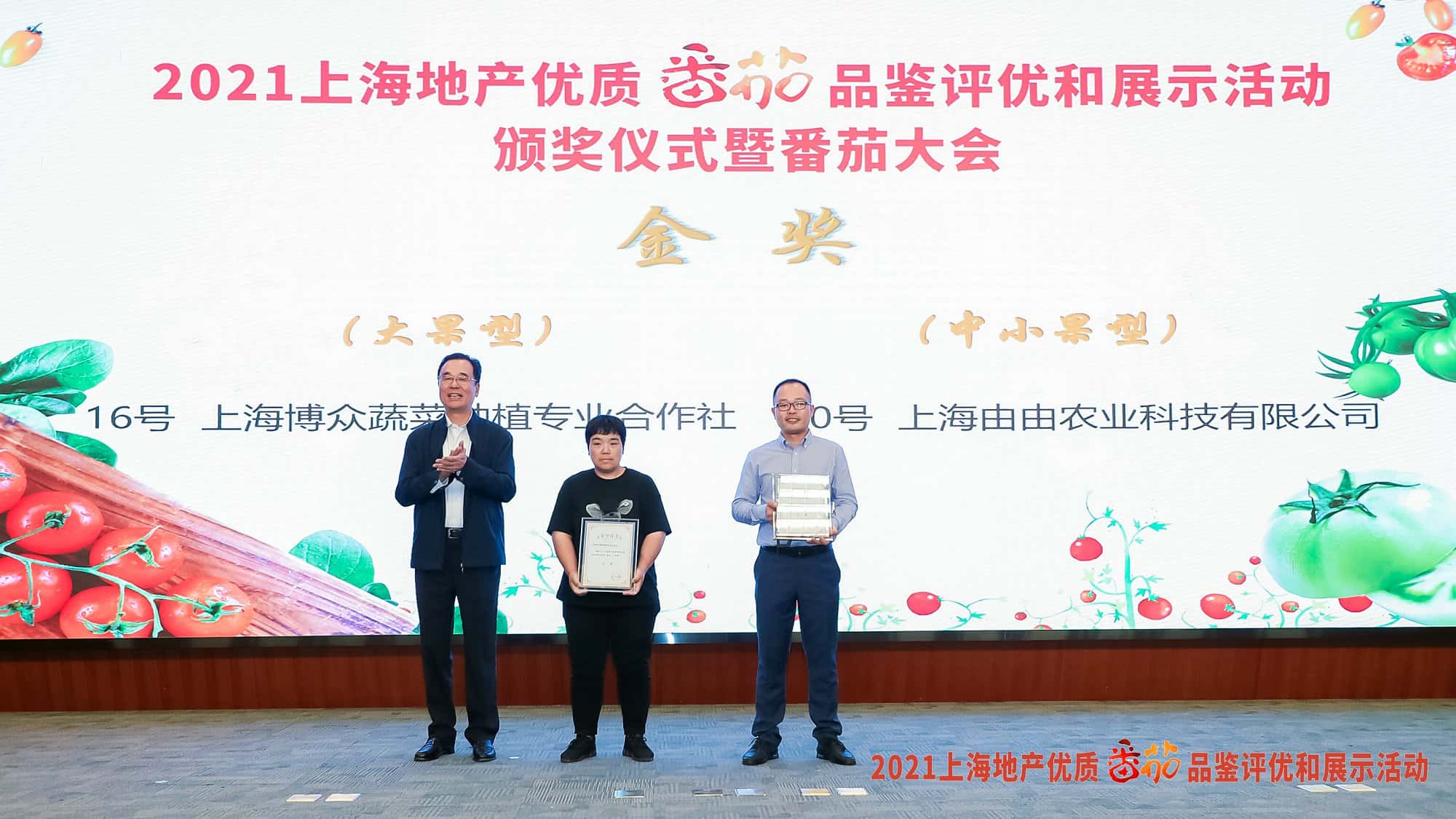 . 市农业农村委党组书记、主任张国坤出席活动并为金奖获得单位颁奖。经过专家、市民评委共同打分,最终,上海博众蔬菜种植专业合作社、上海由由农业科技有限公司从31家参评企业(合作社)中脱颖而出,分别获得优质番茄品鉴评优活动大果型、中小果型金奖。