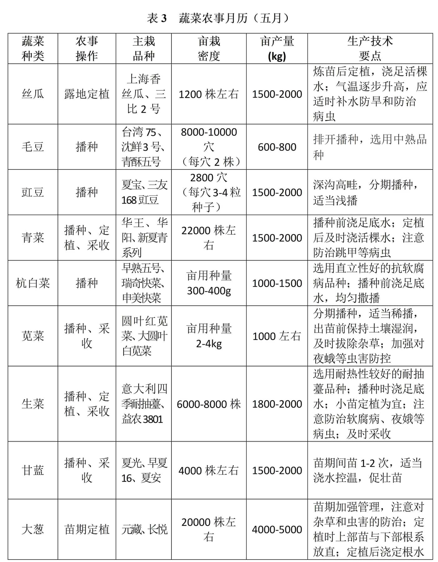 . 另附蔬菜农事五月份月历供参考。