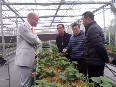 那德飞先生一行先后考察了上海联中食用菌合作社引进荷兰技术的工厂化蘑菇生产基地、金山区草莓研发中心草莓生产示范基地、上海鑫博海农副产品加工有限公司的中央厨房。那德飞先生对金山积极引进荷兰、台湾等先进农业技术,大力推动现代农业发展表示赞赏,他还饶有兴趣地品尝了金山区草莓研发中心培植的草莓,对其口感、品质连连称赞,希望购买一些草莓回去让总领馆的人员品尝。
