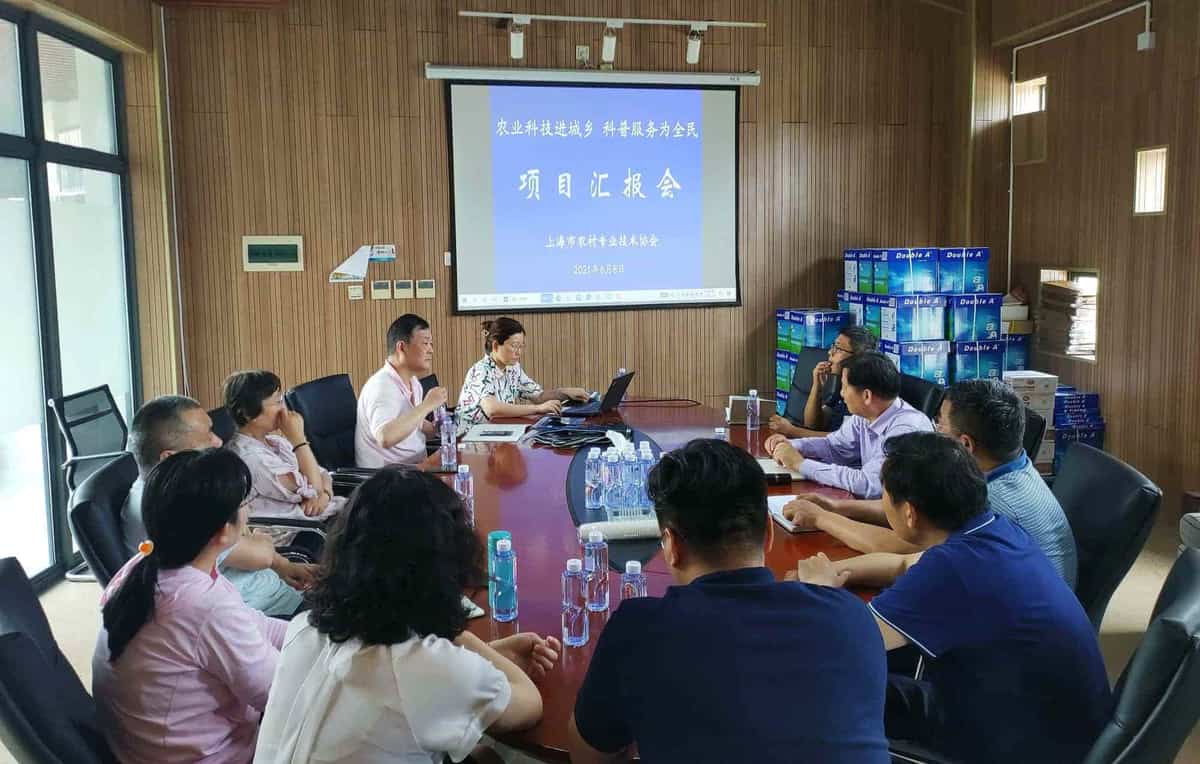 . 6月8日,上海市农村专业技术协会在上实现代农业开发有限公司(崇明东滩团旺路188号)会议室召开“农业科技进城乡,科普服务为全民”项目汇报会。上海市农村专业技术协会理事长陈德明主持会议。技术协会副理事长谢祝捷等10多位领导参加了会议。
