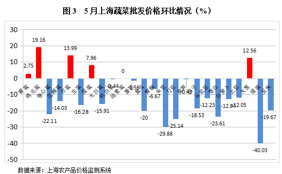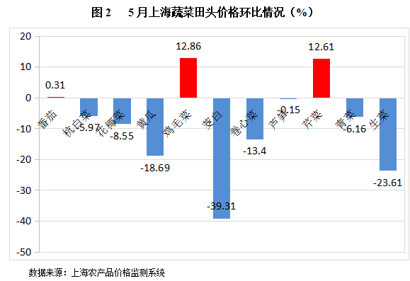 . 根据监测数据,5月份全市监测的11种蔬菜田头价环比,有3种蔬菜为增加,增幅最大的是鸡毛菜,增加了12.86%;另8种蔬菜环比均为下降,降幅最大的为茭白,下降了39.31%。文章源自:上海蔬菜食用菌行业协会 Shanghai Vegetable & Edible Fungi Industry Associatio上海蔬菜食用菌行业协会-https://www.shsjx.org.cn/15469.html