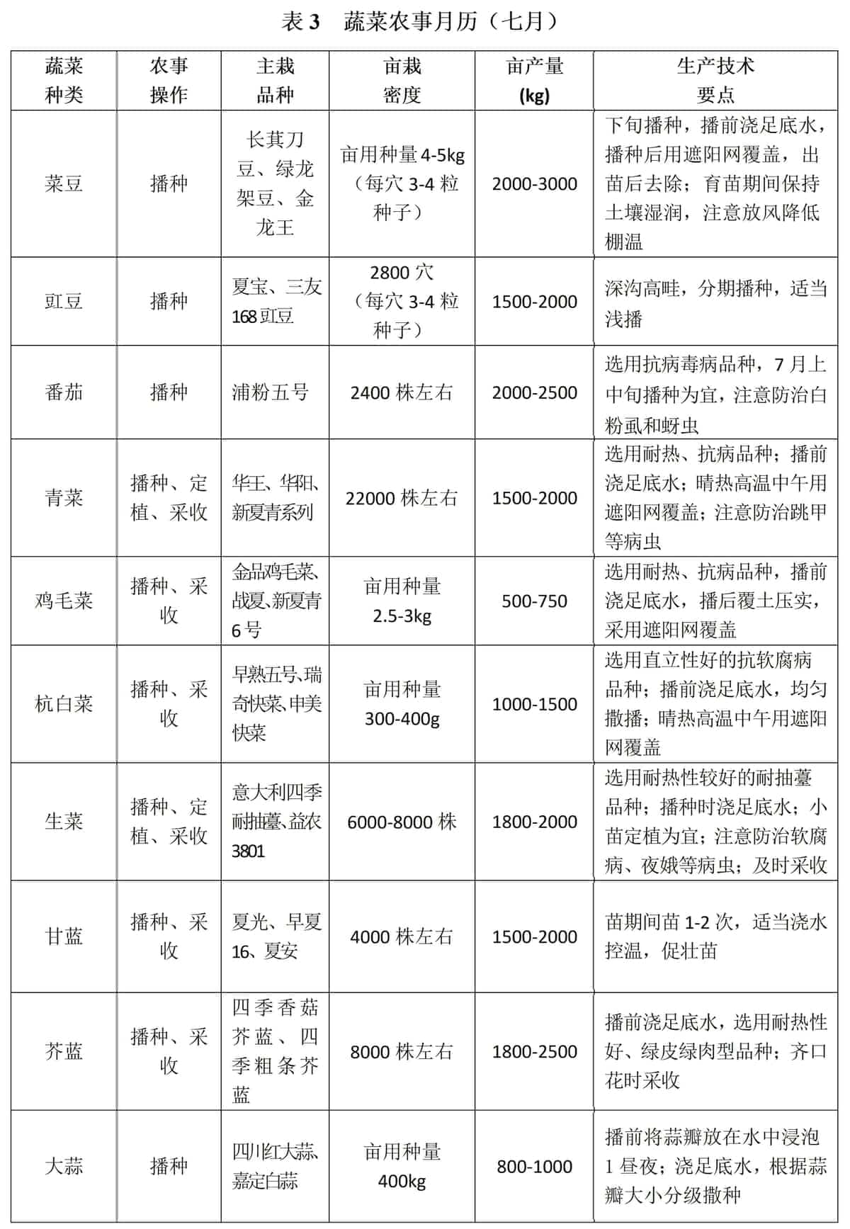 . 另附蔬菜农事七月份月历供参考。
