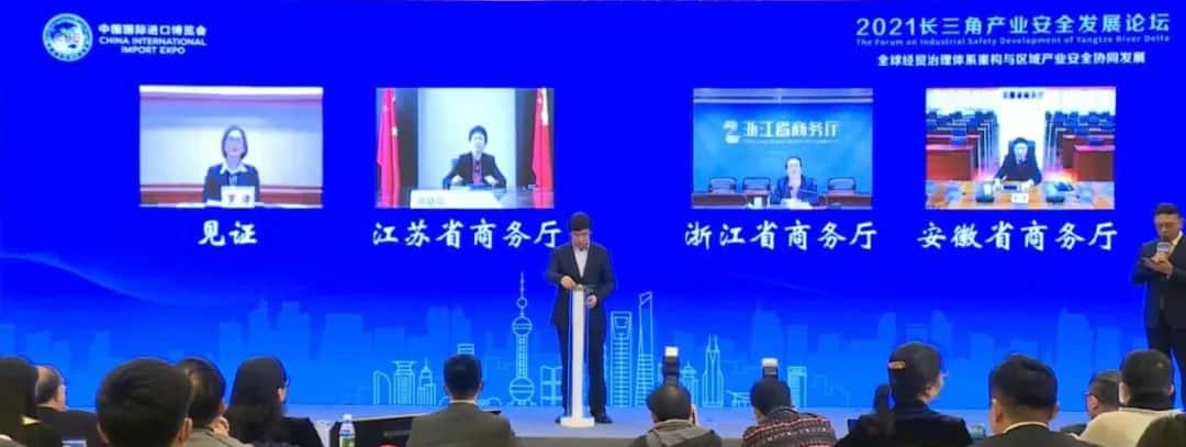 . 论坛上,商务部长三角产业安全监测工作站、前瞻产业研究院、长三角区域一体化研究中心、浙江省对外贸易服务中心、机械工业信息研究院、江苏省应对美国337调查公平贸易工作站等智库代表联合发出开展国际经贸产业安全智库合作倡议。相关智库专家围绕“全球经贸治理体系重构与区域产业安全协同发展”开展了主题对话。