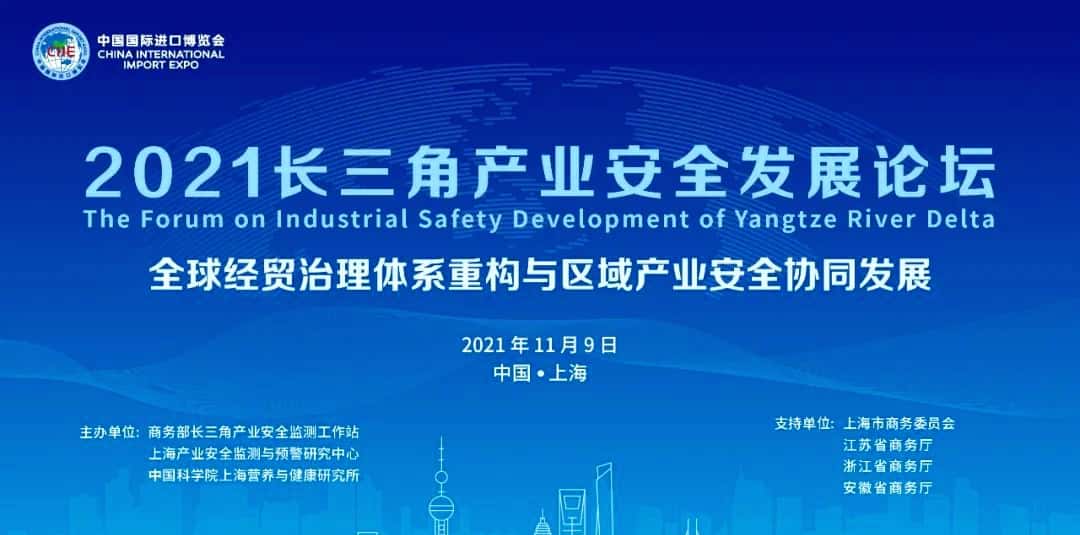 . 11月9日,协会秘书处在徐汇区参加了第四届中国国际进口博览会配套活动“2021长三角产业安全发展论坛”。论坛以“全球经贸治理体系重构与区域产业安全协同发展”为主题,采用线上线下相结合的方式召开。商务部贸易救济调查局局长罗津,商务部驻沪特办特派员徐兴锋,上海市商务委员会副主任、一级巡视员申卫华,中国科学院上海营养与健康研究所学术所长李林院士,党委书记、副所长蔡澎等出席论坛。