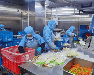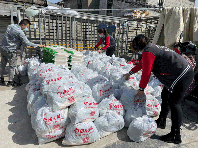 为了奋战第一线,禾文农业全体人员牺牲自己与家人的时间,与疫情共进退,保障民生用餐,公司全力搭配蔬菜,一天2800份蔬菜打包,加班加点第一时间送到用户手中。