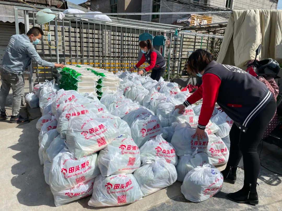 . 3月份以来在全体员工共同努力下,向青浦区封闭社区居民提供送菜上门15000份蔬菜套餐、向青浦区中医院捐赠640份蔬菜套餐、赵巷镇人民政府捐赠260份蔬菜套餐,支援盈浦街道5000份蔬菜套餐。