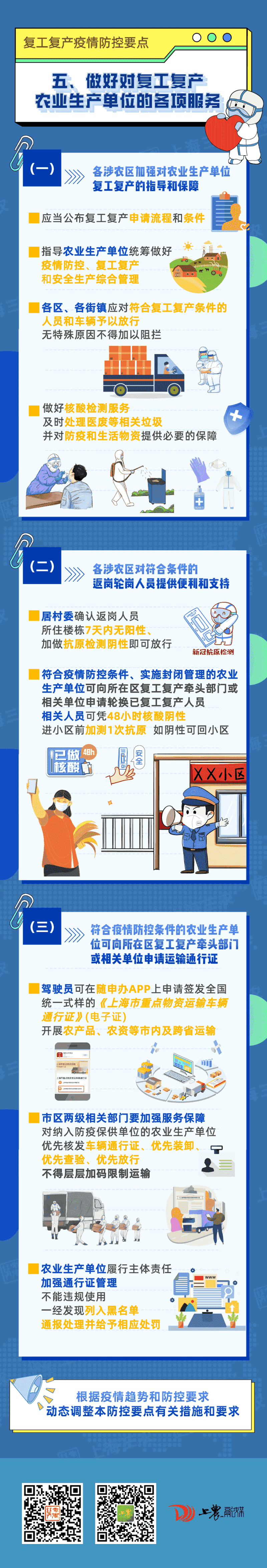 一图读懂 | 上海市农业生产单位复工复产疫情防控要点(第二版)2022年5月25日 10:23:29沪蔬菇 沪蔬菇管理员关注3088文章0粉丝 新闻中心 行业资讯阅读模式 摘要上海市农业生产单位复工复产疫情防控要点(第二版) 文章源自:上海蔬菜食用菌行业协会 Shanghai Vegetable & Edible Fungi Industry Associatio上海蔬菜食用菌行业协会-https://www.shsjx.org.cn/17166.html https://www.shsjx.org.cn/17166.html 复制链接 复制链接