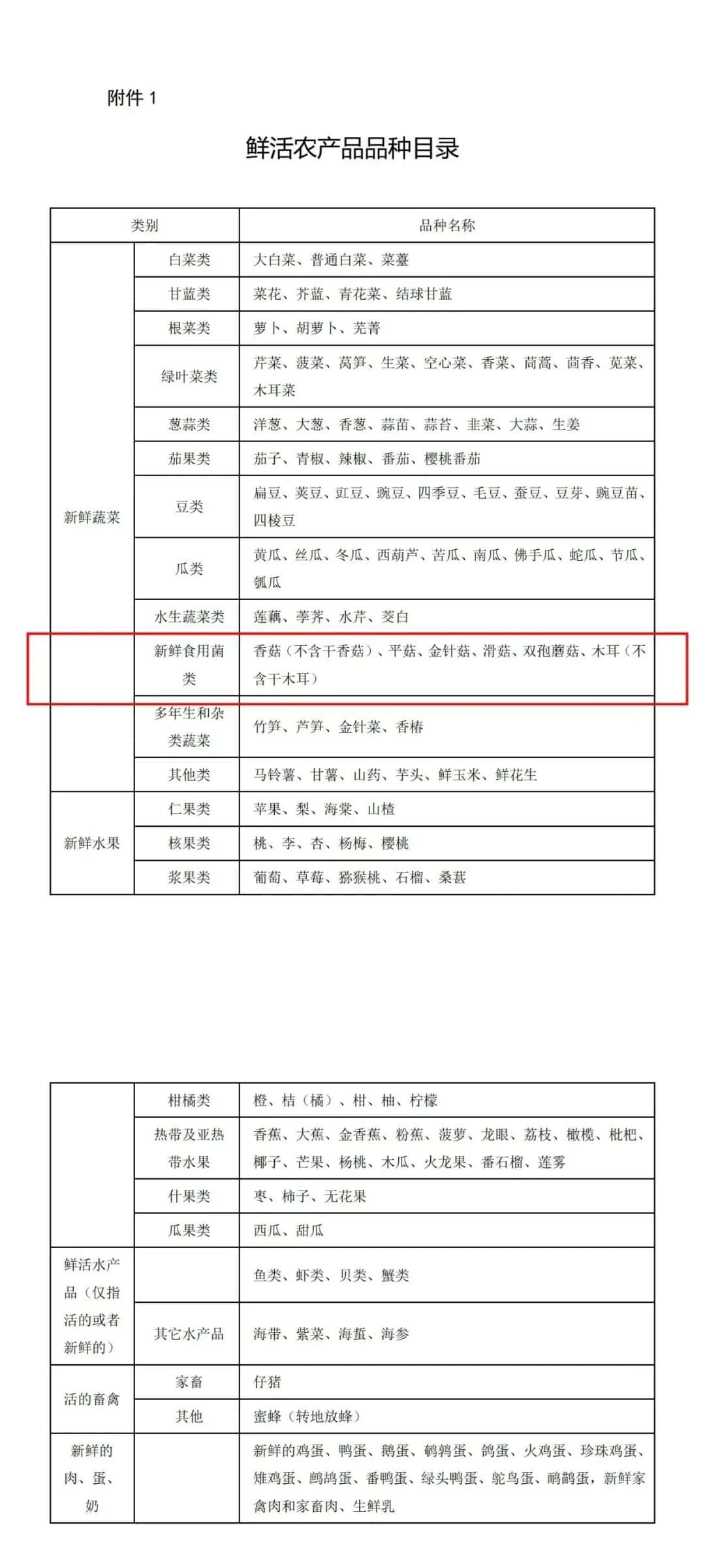 . 附件:1.鲜活农产品品种目录