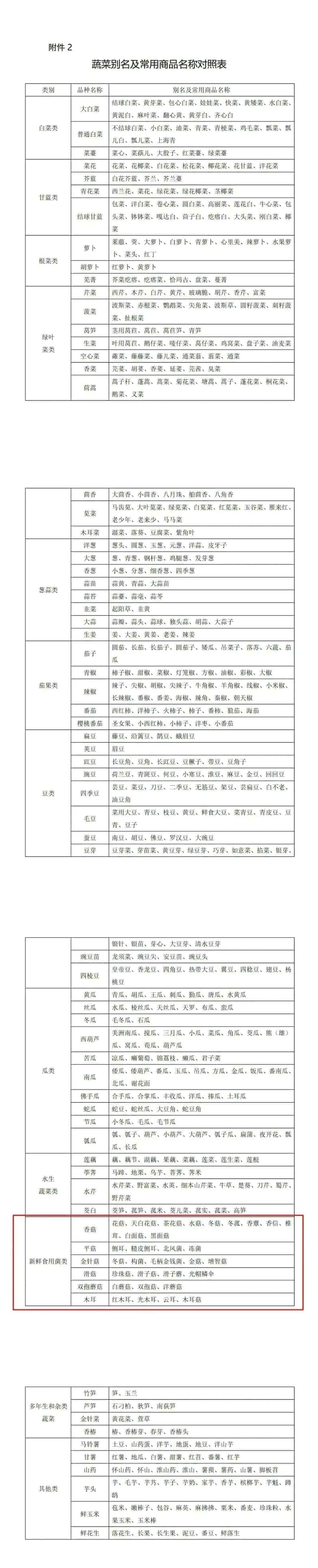 2.蔬菜别名及常用商品名称对照表