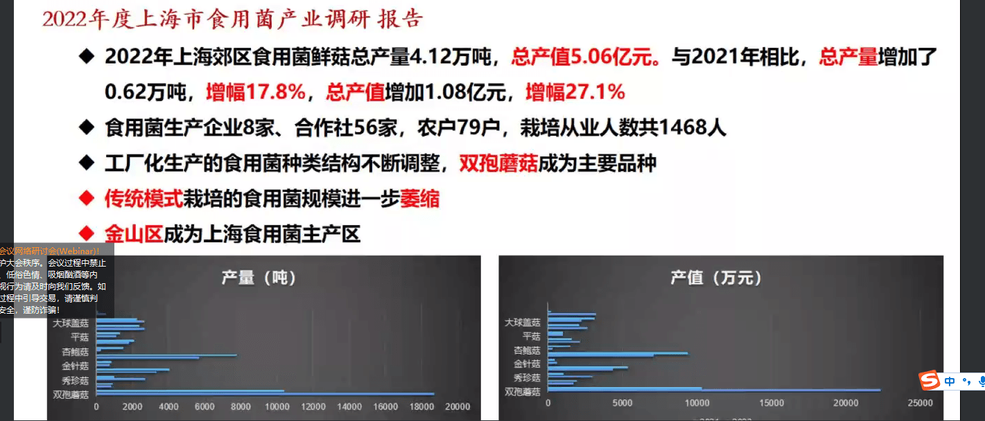 会上做2022年度上海市食用菌产业调研报告(部分)文章源自:上海蔬菜食用菌行业协会 Shanghai Vegetable & Edible Fungi Industry Associatio上海蔬菜食用菌行业协会-https://www.shsjx.org.cn/17782.html