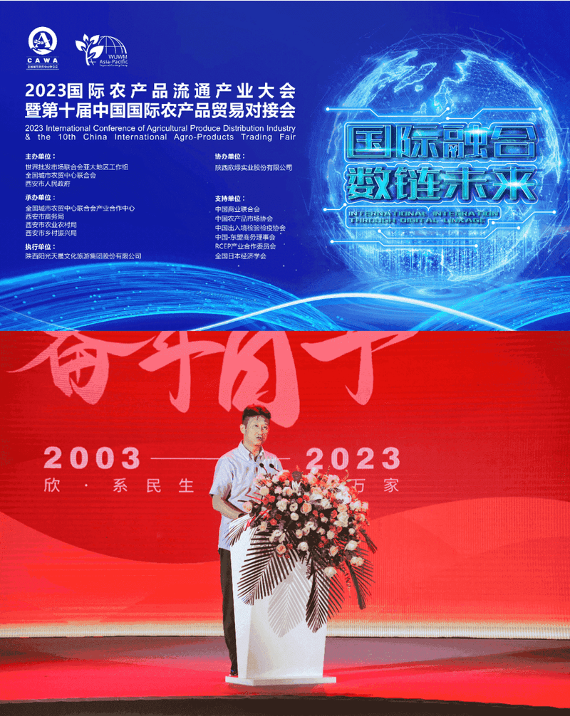 . 7月25日,我协会会长吴梦秋参加了由世界批发市场联合会亚太地区工作组、全国城市农贸中心联合会、西安市人民政府共同主办,全国城市农贸中心联合会产业合作中心、西安市商务局、西安市农业农村局、西安市乡村振兴局承办,在西安国际会展中心召开的2023年国际农产品流通产业大会暨第十届中国国际农产品贸易对接会。