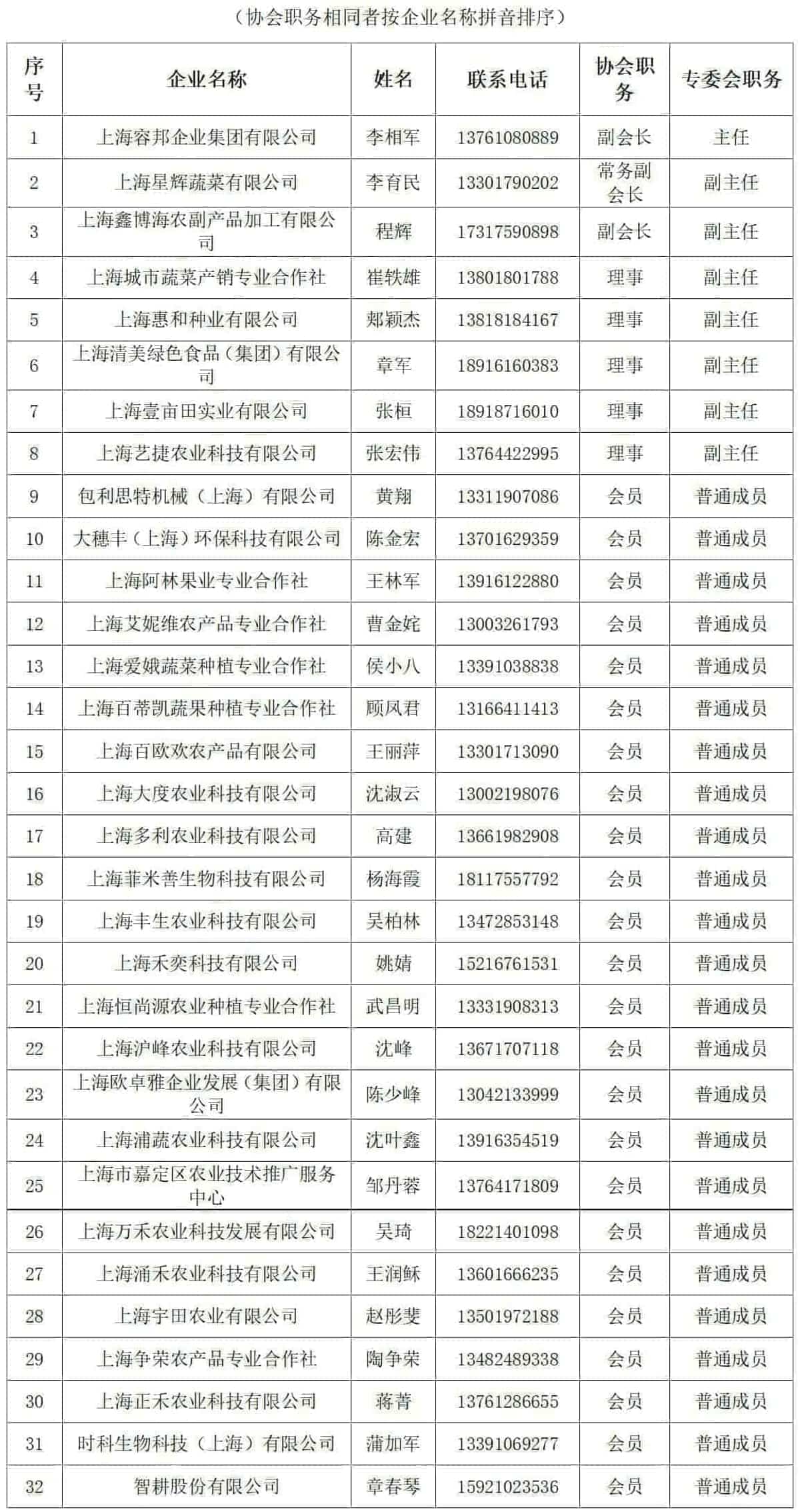 (具体名单见下表)文章源自:上海蔬菜食用菌行业协会 Shanghai Vegetable & Edible Fungi Industry Associatio上海蔬菜食用菌行业协会-https://www.shsjx.org.cn/18681.html