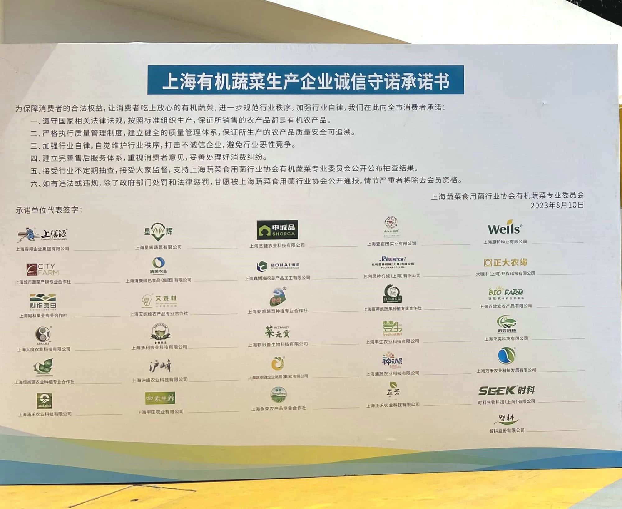 . 与会期间,全体有机专委会成员代表签署了《上海有机蔬菜生产企业诚信守诺承诺书》,通过进一步规范行业行为,让市民们吃上健康放心的有机蔬菜。上海现有10000多亩有机蔬菜种植基地,这些有机蔬菜生产基地不仅满足了上海这座国际化城市中有机蔬菜消费群体的需求,更提供一种生态环保、低碳绿色的种植模式,恢复农业生态系统的生物多样性,促进农业的可持续和高质量发展。