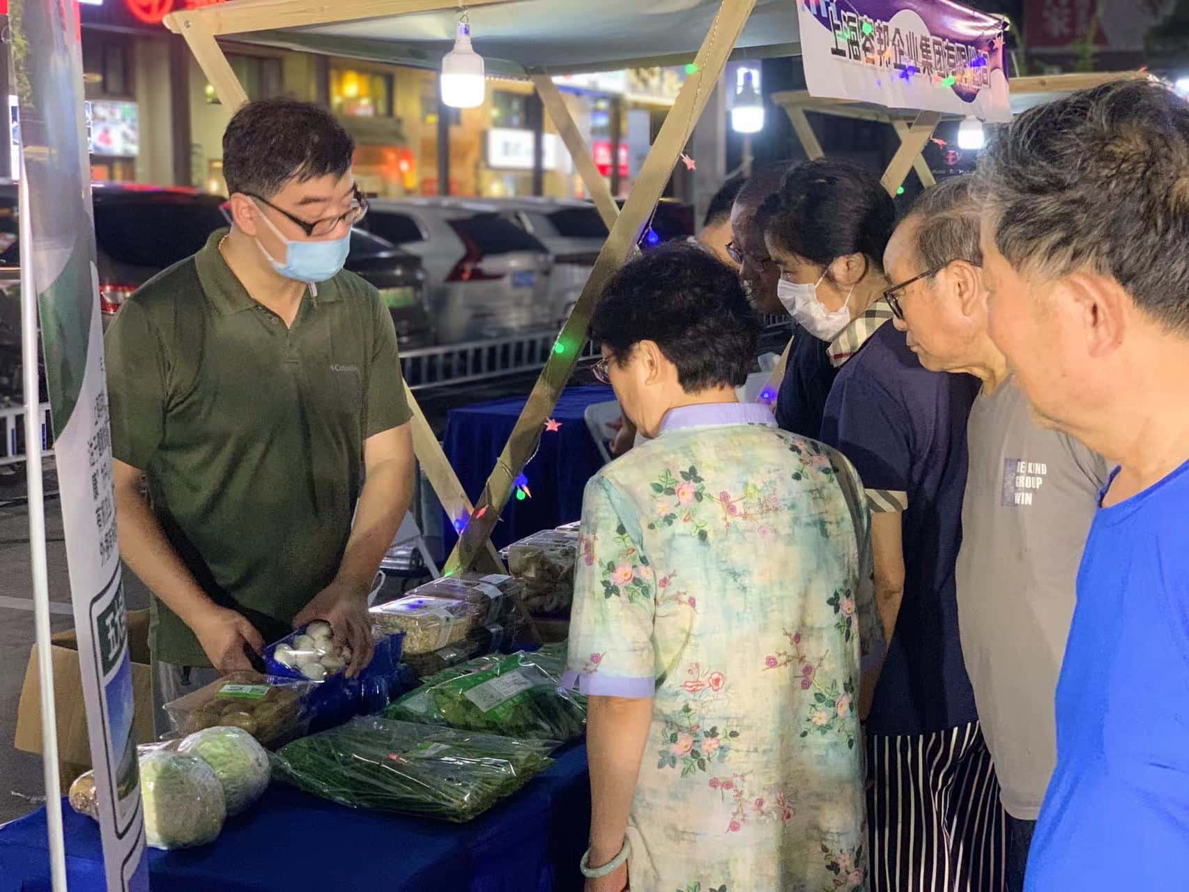 . 日前,由宝山区大场镇社区建设办公室主办的“缘来食这里”大场镇15分钟生活美食夜市活动于9月17号和9月24号晚上在聚丰园路91弄上坤城市广场召开。协会秘书处组织协会副会长单位上海容邦企业集团有限公司、协会理事单位上海壹亩田实业有限公司等单位参与设摊,向市民们推荐优质的地产蔬菜食用菌等农产品,也让居民在家门口享受到实惠和便利。