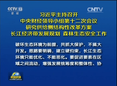 习近平主持召开中央财经领导小组第十二次会议 研究供给侧结构性改革方案、长江经济带发展规划、森林生态安全工作