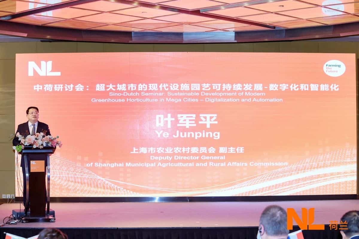 . 上海市农业农村委员会副主任、上海市乡村振兴局副局长叶军平在致辞中表示,长期以来,上海与荷兰在设施农业与园艺产业上合作密切,荷兰全球领先的智能玻璃温室技术为上海统筹做好绿色生态、绿色生产、绿色生活的大文章提供了有益借鉴。希望以此次研讨会为契机,进一步加强荷兰和上海在超大城市设施农业方面的合作,共同努力、携手同行,将现代设施农业推向新的高度。