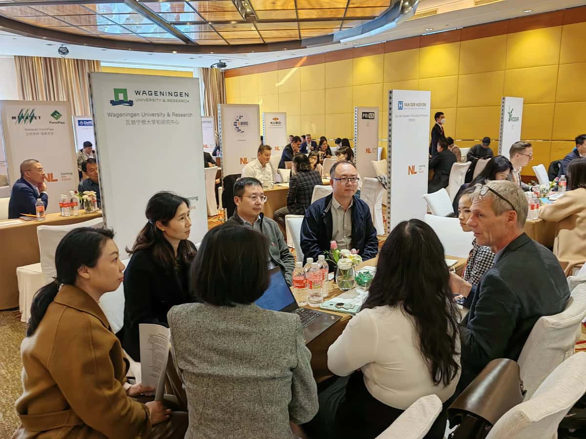 . 在上海市农业农村委员会、荷兰王国驻华大使馆的大力支持下,值荷兰农业、自然与食品质量部国际合作司代司长马赛尔先生访华之际,由荷兰王国驻沪总领事馆主办,我协会组织邀请的中荷园艺商务对接会,于11月28日下午在上海威斯汀饭店举行。我协会的副会长单位上海星辉蔬菜有限公司、上海彭世菇业有限公司,理事单位上海静捷蔬菜专业合作社、上海清美绿色食品(集团)有限公司,监事单位上海市农业科学院,会员单位上海永通生态工程股份有限公司、上海宜蓝生物科技有限公司、上海艾妮维农产品专业合作社、上海百蒂凯农业科技有限公司、上海易航海芯农业科技有限公司等受邀参加本次活动。 . 中荷现代设施园艺商务对接会旨在加强和促进中荷两国政府,研究机构和企业之间的紧密合作,为两国企业交流园艺领域方面的合作创新和经验交流提供一个平台,给中荷双方的企业和研究机构创造商业机会。参加对接会的荷兰企业一共有14家,涵盖了温室设计和建造,栽培系统,物流系统,花卉(玫瑰),软件应用,AI技术,教育培训等多个领域。 . 星辉蔬菜董事长李育民向荷方代表团简要介绍了公司发展情况,并带领荷方企业一同参观了温室大棚。据董事长李育民介绍,星辉蔬菜共计200公顷温室和1100公顷的陆地,其中5.5公顷育苗基地实现了全程机械化。这些温室的建造和管理中有不少是学习借鉴了荷兰的技术。现场,代表团的瓦格宁根大学教授和李总探讨了水培生菜的种植技术。代表团成员纷纷表示此次参观受益颇多,期待未来和星辉蔬菜有更进一步的合作。