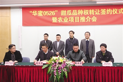 “华蜜0526”甜瓜品种权以90.6万元的价格成功转让。成果转让方上海市农业技术推广服务中心,受让方上海惠和种业有限公司,交易鉴证方上海市农业科技服务中心、上海农村产权交易所共同在协议书上签字。