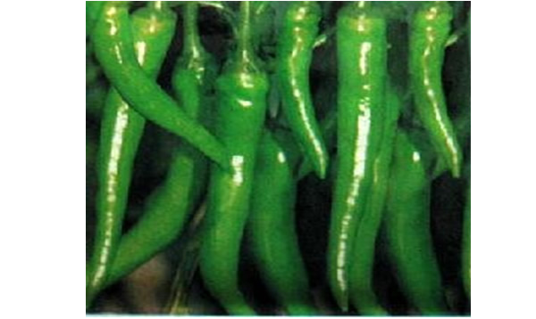· 杭椒:品质优良,青熟果淡绿色,果实微辣,老熟果红色。果面略皱,果顶渐尖,稍弯。它既是美味佳肴的好佐料,又是一种温中散寒、可用于食欲不振等症的食疗佳品。