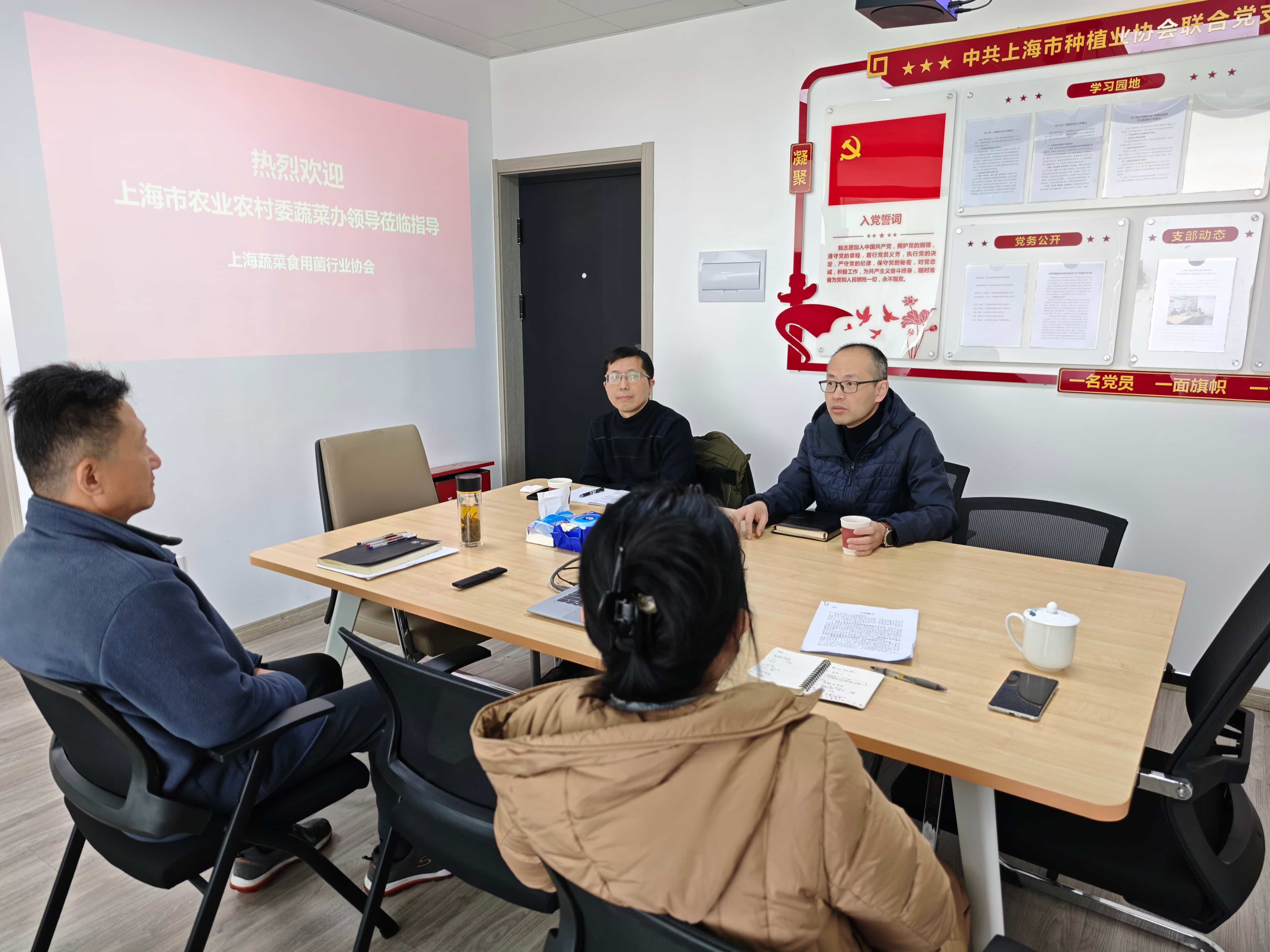 3月6日,上海市农业农村委蔬菜办主任翟欣、三级调研员叶胜舟一行赴上海蔬菜食用菌行业协会秘书处调研指导。协会会长吴梦秋、秘书长庄奇佳等出席调研座谈会。