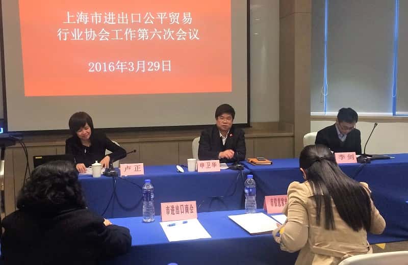 3月29日,协会秘书处孙占刚副秘书长参加了市商务委公平贸易处组织召开的“上海市进出口公平贸易行业协会工作第六次会议”,市商务委申卫华副主任,公平贸易处卢正处长到会并讲话。