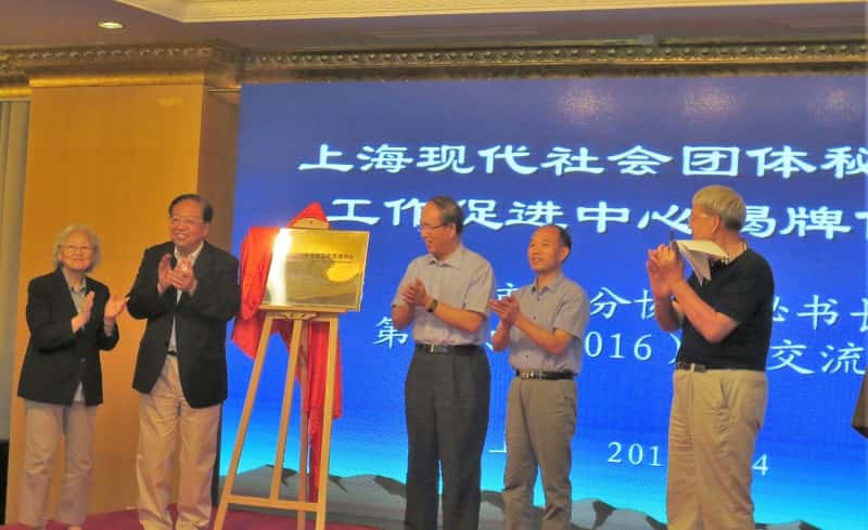 7月4日下午,上海现代社会团体秘书长工作促进中心揭牌仪式举行。市老领导蒋以任、周禹鹏、谢丽娟等参加。本行业协会秘书处沈佳治应邀出席。会上,有关专家作了经济形势报告。