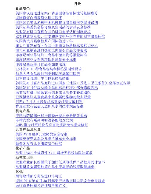 上海检验检疫局《国外检验检疫快讯》2016年第9期 总第255期