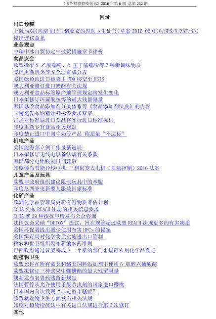 上海检验检疫局《国外检验检疫快讯》2016年第6期 总第252期