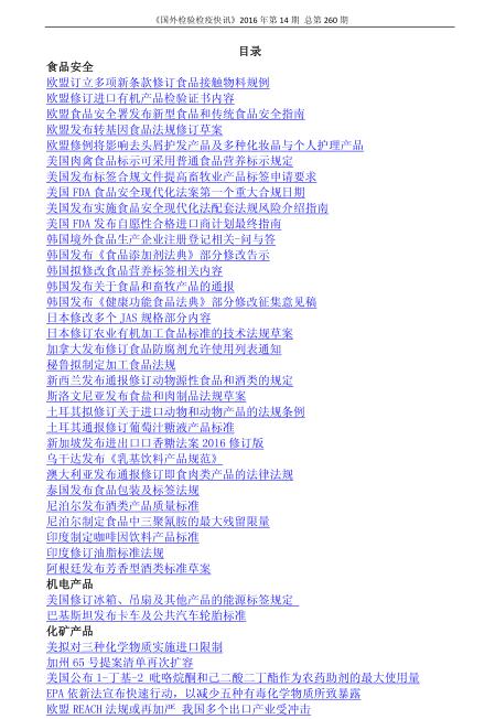 上海检验检疫局《国外检验检疫快讯》2016年第14期 总第260期