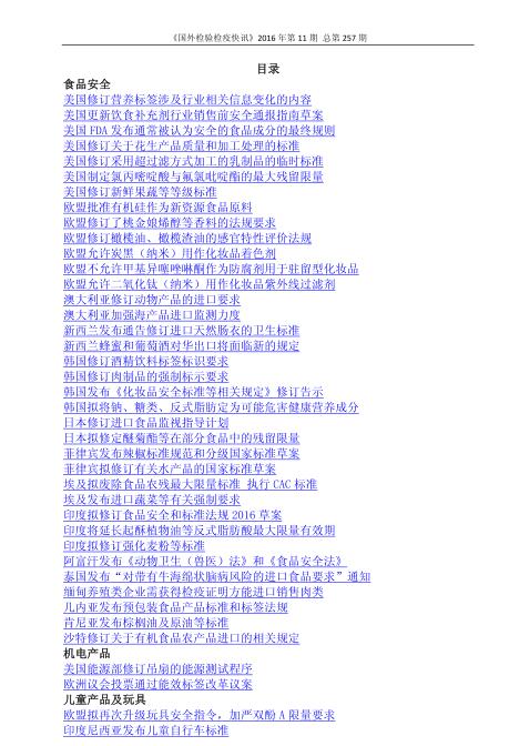 上海检验检疫局《国外检验检疫快讯》2016年第11期 总第257期