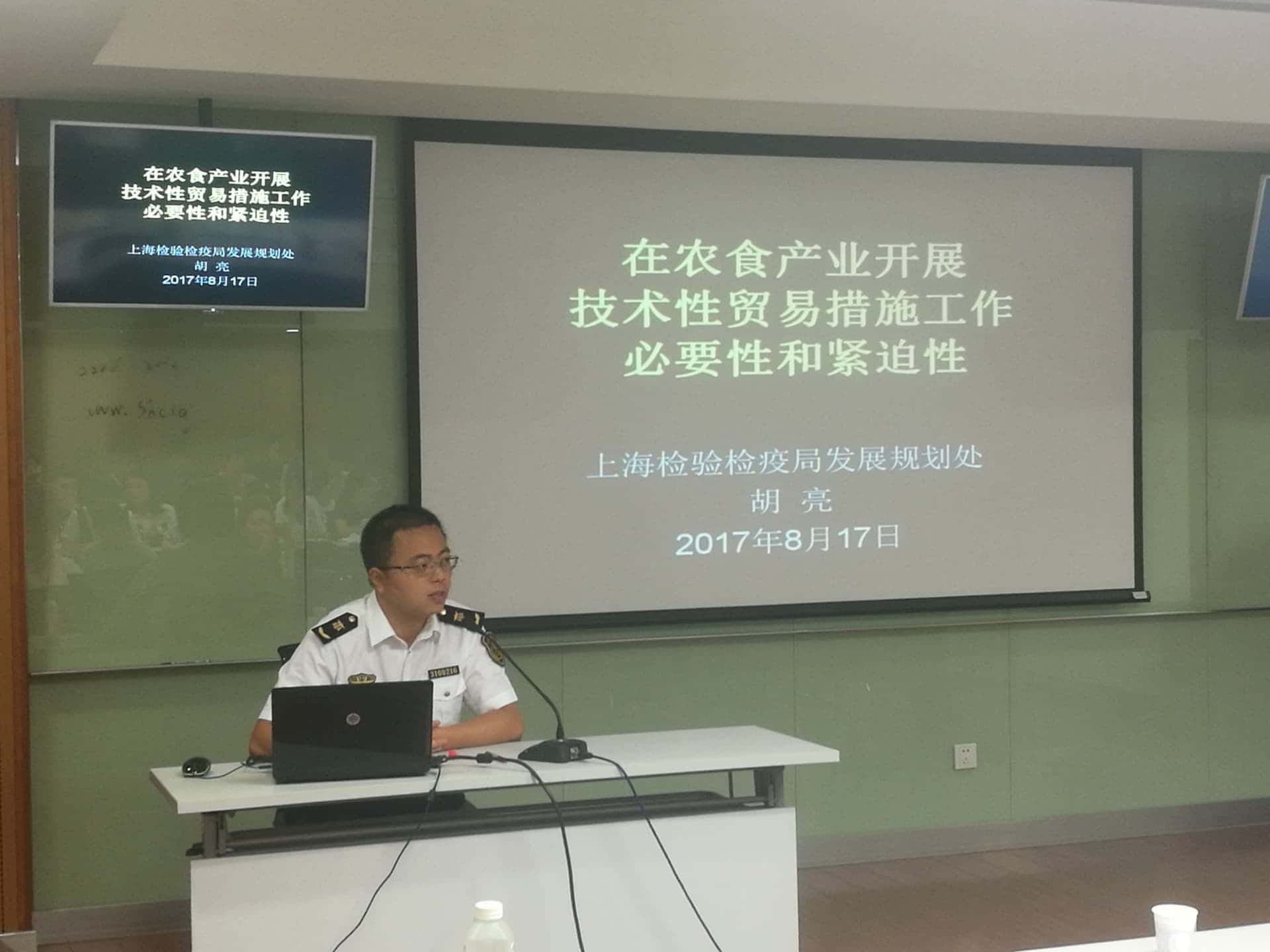· 上海出入境检验检疫局胡亮科长为大家作了 《在农食行业开展技术性贸易措施工作的必要性和紧迫性》的报告。