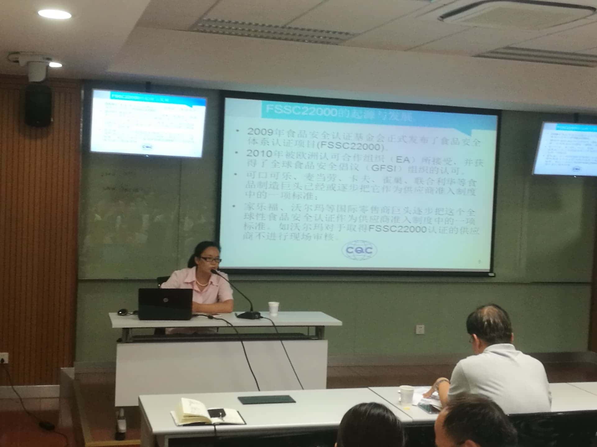 · “中国检验认证集团上海公司”刘长虹经理为大家介绍了《FSSC22000认证简介》: