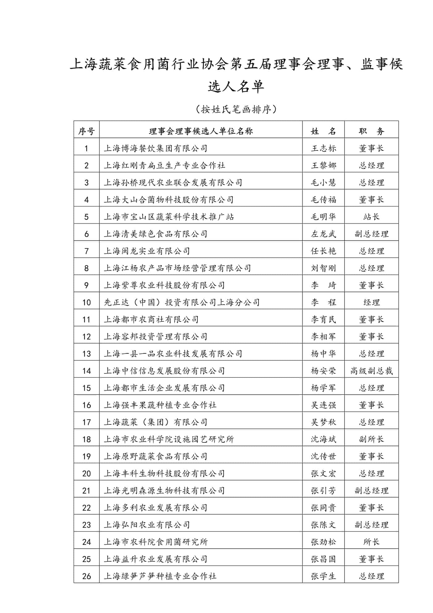 附:《上海蔬菜食用菌行业协会第五届理事会理事、监事候选人名单》文章源自:上海蔬菜食用菌行业协会 Shanghai Vegetable & Edible Fungi Industry Associatio上海蔬菜食用菌行业协会-https://www.shsjx.org.cn/5221.html
